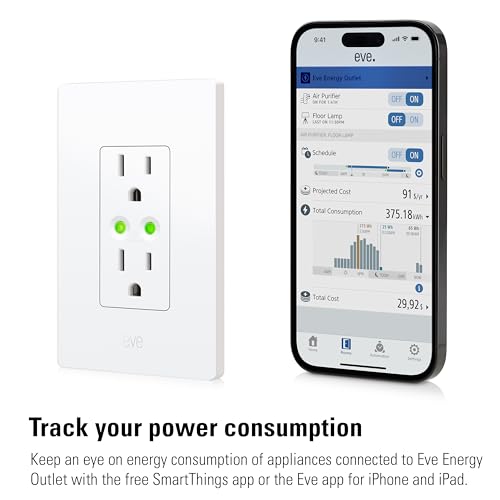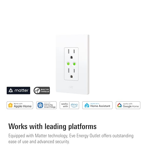 Eve Energy Outlet (Matter) 3-Pack ?C Smart Outlet & Power Meter, App & Voice Control, No Bridge, Thread, Works with Apple Home, Alexa, Google Home, SmartThings, 100% Privacy, Requires Thread Router