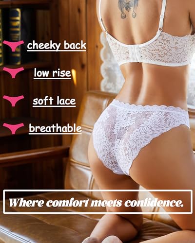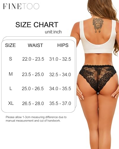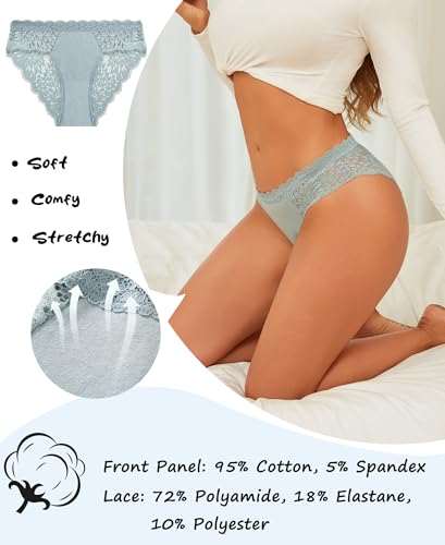 FINETOO 6 Pack Bikini Underwear for Women Sexy Lace Cheeky Panties Low Rise Hipster Cotton Panty