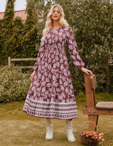 GRACE KARIN Womens 2025 Long Sleeve Floral Maxi Dress V Neck High Waist A Line Flowy Wedding Guest Dresses