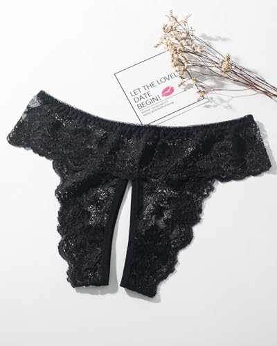 Justgoo Womens Sexy Thongs Lace Panties Underwear Low Rise Plus Size Underpants Pack of 5