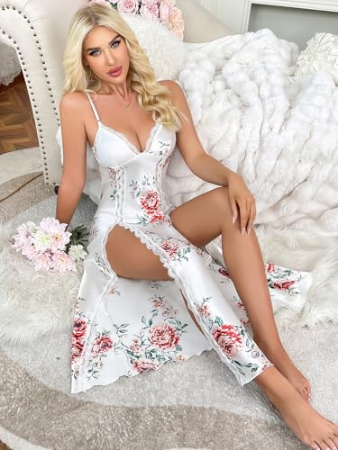 Lingerie Dress for Women V Neck Long Sexy Nightgowns for Women Side Split Sexy Night Gowns S-XXL