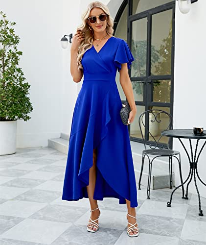 Long Black Formal Dresses for Women Gowns Evening Party Cocktail Dress,Split Elegant V Neck Wrap Ruffle Wedding Guest Dresses