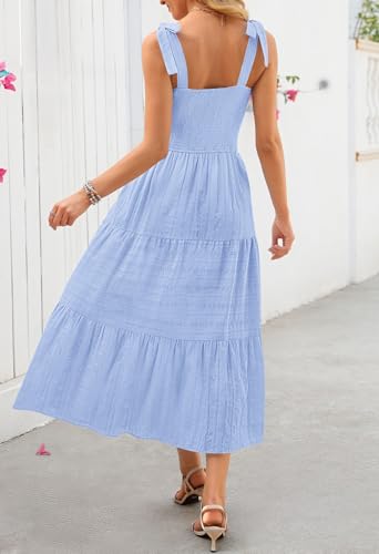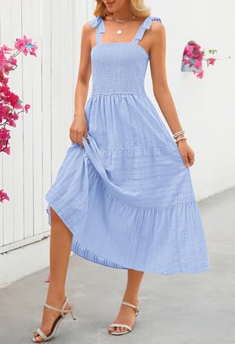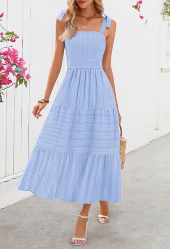 MEROKEETY Women's Summer Boho Maxi Dress Beach Vacation Casual Smocked A Line Sundress with Pockets