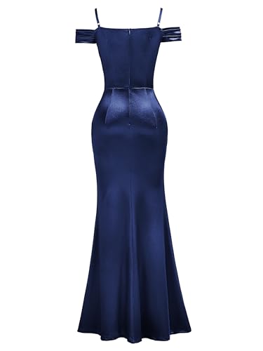 Miusol Women's Sexy Off Shoulder Satin High Split Ruched Style Evening Party Maxi Dress