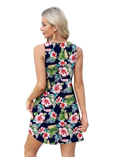 OFEEFAN Womens Summer Dresses 2025 V Neck Sleeveless Sundresses with Pockets Beach Vacation Clothes Floral/Plain
