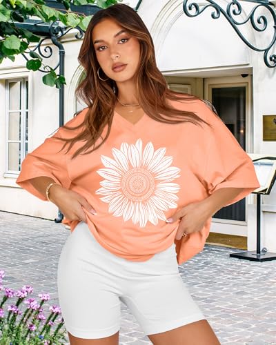 Oversized Tshirts for Women V Neck Short Sleeve Summer Casual Basic Loose Tops