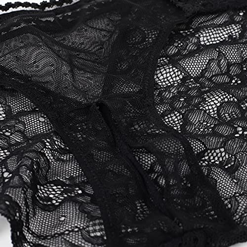PERAMBRY Women's Lace Stretch Sexy Thong Bikini Panties Bow Tie Breathable Fashionable
