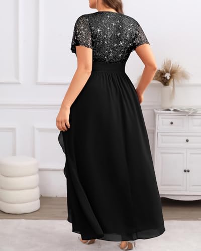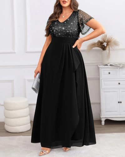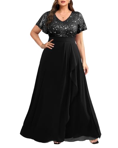 Pinup Fashion Women Plus Size Formal Dresses - Sequin Evening Gowns Wedding Guest Prom Long Dress