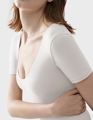 PUMIEY Women's V Neck Short Sleeve Bodysuit Sexy Tops Sharp Collection