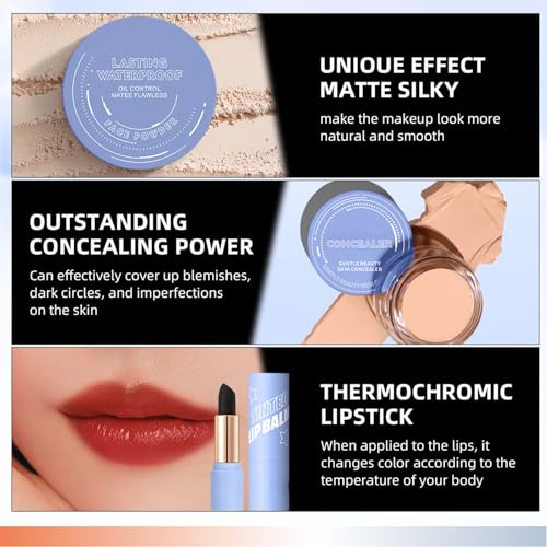 [Face Makeup Set]: This full face makeup set includes lip gloss, lipstick, eyeliner, mascara, eyebrow pencil, concealer, powder and foundation. One set can solve all your facial makeup problems.