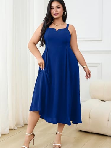 RWJ Women's Plus Size Dresses with Pockets V-Neck Sleeveless Maxi Dress for Wedding Guest Dress Formal Cocktail