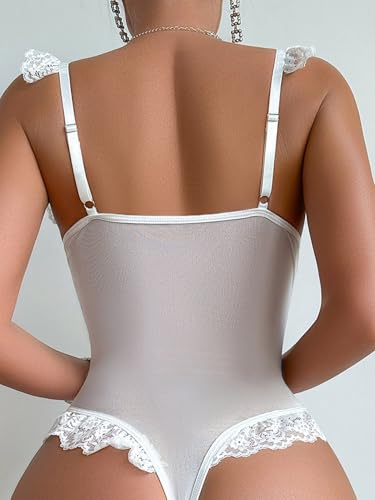 Sexy Ruffle Mini Mesh Floral Lace UnderWire Sheer Belt Lingerie Set Teddy Bodysuit Top 2 Piece