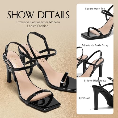 Stilettos High Heel Sandals For Women, Square Open Toe Slingback Pumps, Adjustable Strappy Wedding Dressy Heeled, Ankle Strap Party Sexy Bridal Shoes