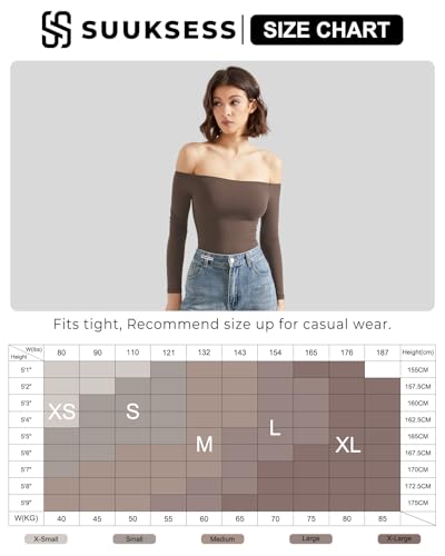 SUUKSESS Women Off the Shoulder Long Sleeve Bodysuit Double Lined Thong Bodysuit