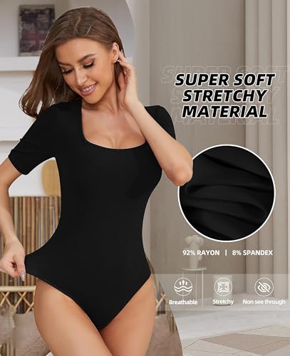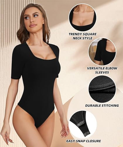 TQD Women's Square Neck Bodysuit Short Sleeve Bodysuit for Women Elbow Sleeve Tshirt Body Suit Top
