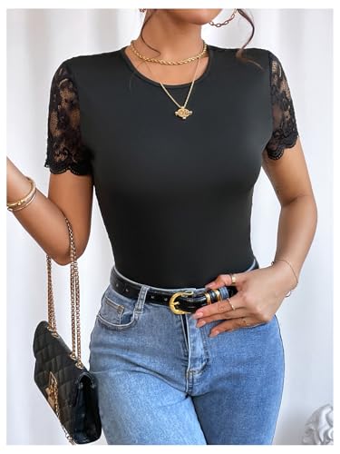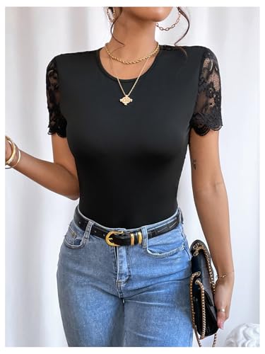 Verdusa Women's Lace Short Sleeve Bodysuit Backless Bodysuits Tummy Control Night Out Concent Outfits