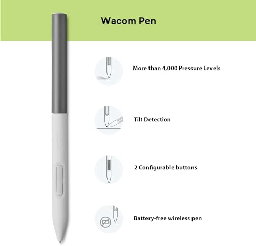 Precision Pen Performance: Included Wacom One Pen features natural tilt recognition, virtually lag-free tracking, 4096 levels of pressure sensitivity, and 2 customizable switches