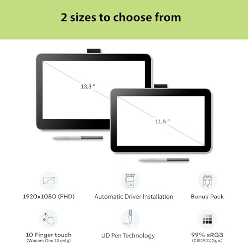 Wacom One 12 Drawing Tablet with Screen, 11.6" HD Full-Laminated Digital Art Tablet with Creative Software and Training, Graphics Drawing Pad for Mac, Windows PC, Chromebook