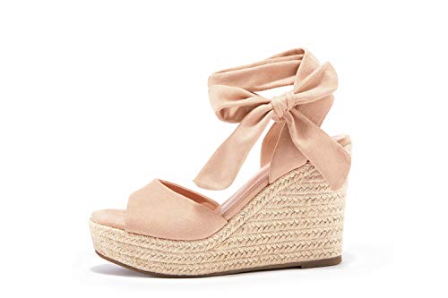Womens Espadrilles Wedges Sandals Heels Open Toe Tie Lace Up Platform Ankle Strap Summer Dress Shoes