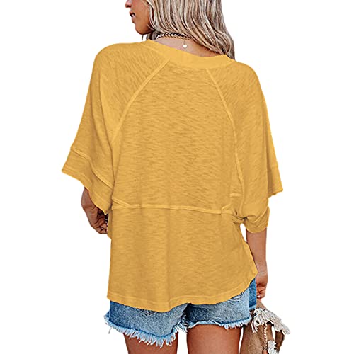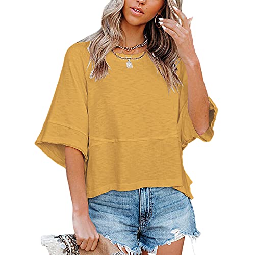 Women's Summer Casual Crewneck Batwing Half Sleeve T-Shirts Solid Color Loose Fit Cute Basic Flowy Tops Tees Blouses
