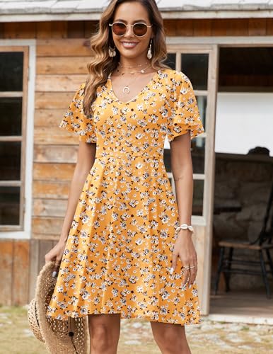 Zeagoo Womens Summer Dress Casual Swing Floral Ruffle Short Sleeve Sundresses Beach Mini A-line Shift Dress 2025 with Pockets